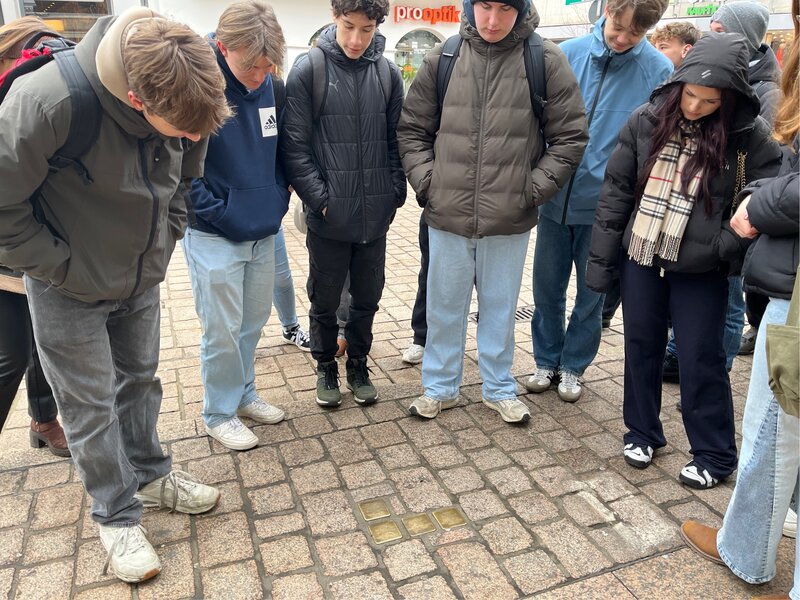Während unseres Rundgangs haben wir einige Stolpersteine entdeckt, die in den Gehwegen verlegt sind und an jüdische Bürgerinnen und Bürger sowie andere Opfer des Nationalsozialismus erinnern. Sie verdeutlichen, dass Geschichte nicht nur durch große Bauwerke, sondern auch im Alltag der Menschen sichtbar wird.